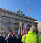 Am Tag des europäischen Notrufs wurde das Richtfest der Kooperativen Leitstelle am Nikolaus-Groß-Weg gefeiert. Neben dem Neubau eines Einsatzleit- und Lagezentrums an der Gallwitzallee wird am Nikolaus-Groß-Weg die bereits bestehende Leitstelle der Feuerwehr durch einen Neubau erweitert, der höchste Sicherheitsanforderungen gerecht wird. Nach Rohbau, Fassadenarbeiten und Innenausbau folgt die Installation der komplexen Systemtechnik. Die Fertigstellung ist für 2029 geplant. So entstehen u.a. 20 neue Arbeitsplätze für die Annahme von Notrufen, damit Feuerwehr und Polizei künftig noch besser zusammenarbeiten und schneller auf Notrufe reagieren können.